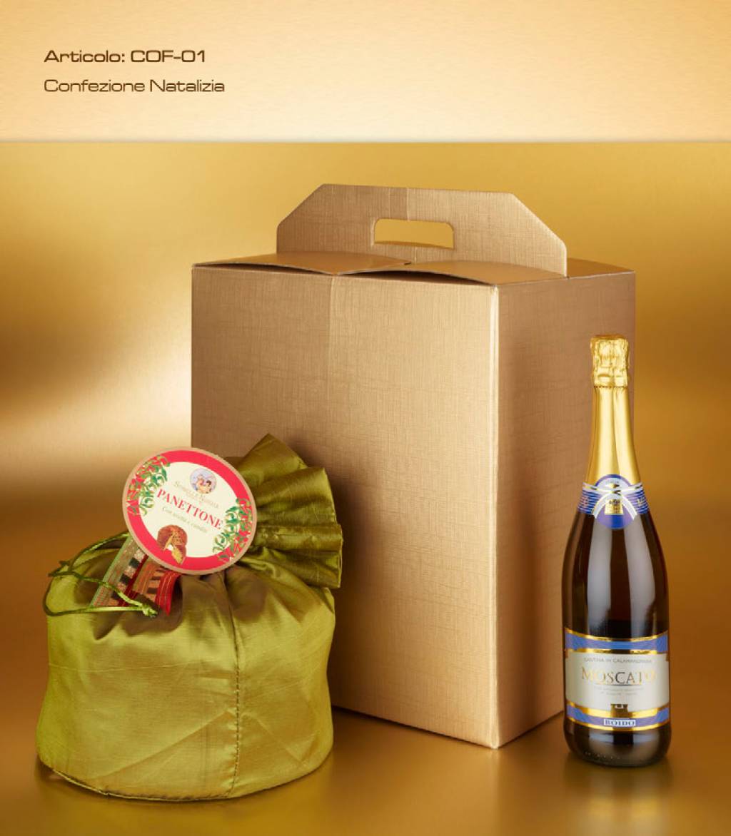 Art. 01 Cofanetto Natalizio: Panettone kg 1 Sorelle Nurzia - Prosecco doc Treviso - Moscato d' Asti docg - Le confezioni sono solo dimostrative e possono subire variazioni