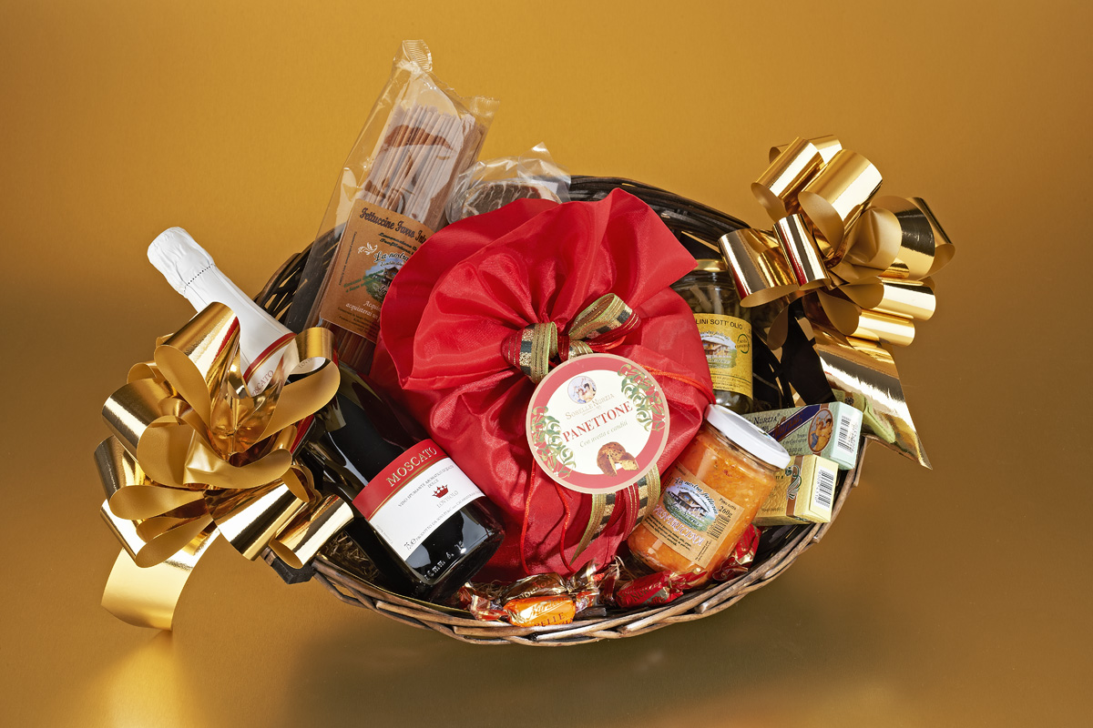 I CESTI NATALIZI SONO REALIZZATI CON PRODOTTI DOLCIARI ED ENOGASTRONOMICI ACCURATAMENTE SELEZIONATI. LE IMMAGINI SONO SOLAMENTE ILLUSTRATIVE E I PRODOTTI INSERITI SONO ELENCATI NELLE SCHEDE.